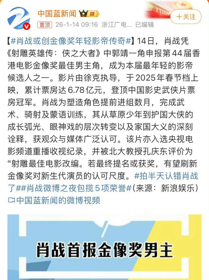 甚至认为肖战有望创造“金像奖年轻影帝传奇”,刷新金像奖对“年轻演员的认可尺度”。